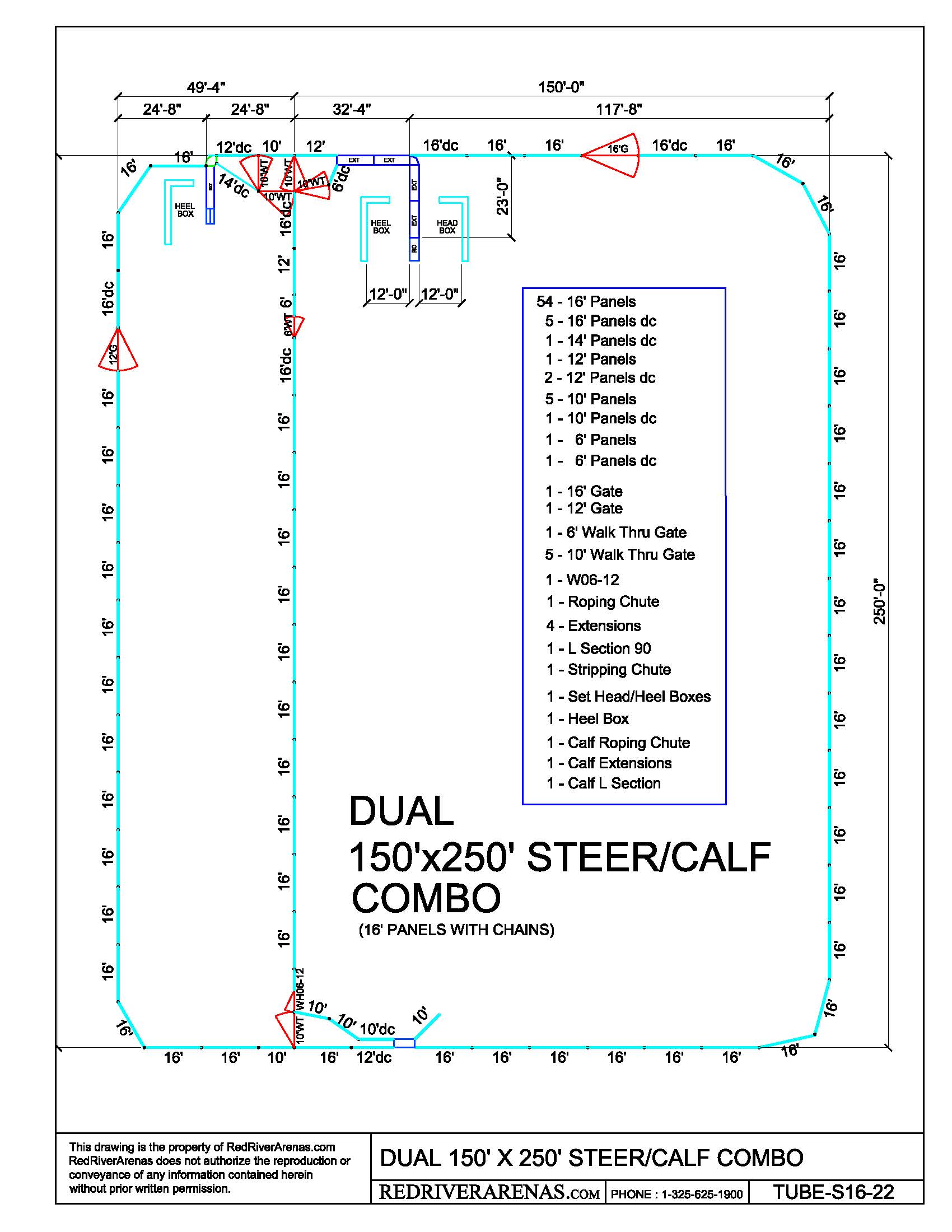 150X250 Dual Steer/Calf Combo w/o Return (PEH16 Series Panel)