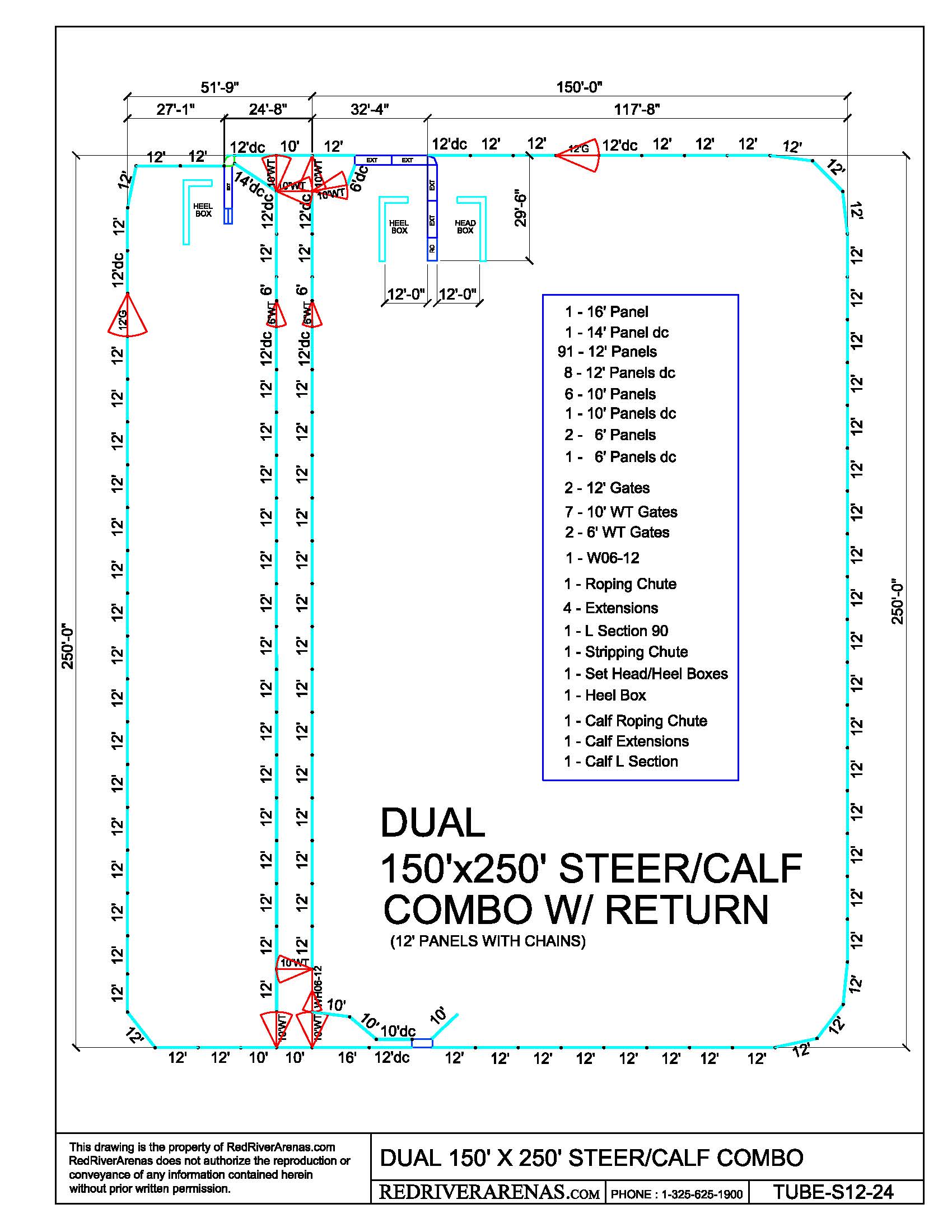 150X250 DUAL STEER/CALF COMBO W/ RETURN