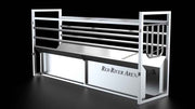 Red River Arena's all galvanized calf roping chutes are designed to let the calf roper have a smooth, easy practice. Red River Arena's calf roping chute is constructed from 14 gauge 1" galvanized square tubing and 14 gauge galvanized sheet metal. The calf roping chute measures 70" long, 49" tall, and 28" wide and weighs approximately 300 pounds