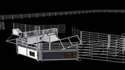 Red River Arena's roping chute is constructed from 14 gauge 2" galvanized square tubing and 14 gauge galvanized sheet metal. The combo steer and calf roping chute measures 6'4" long, 5' tall, and 32" wide OD and 28" wide ID and weighs approximately 545 pounds.
