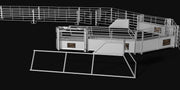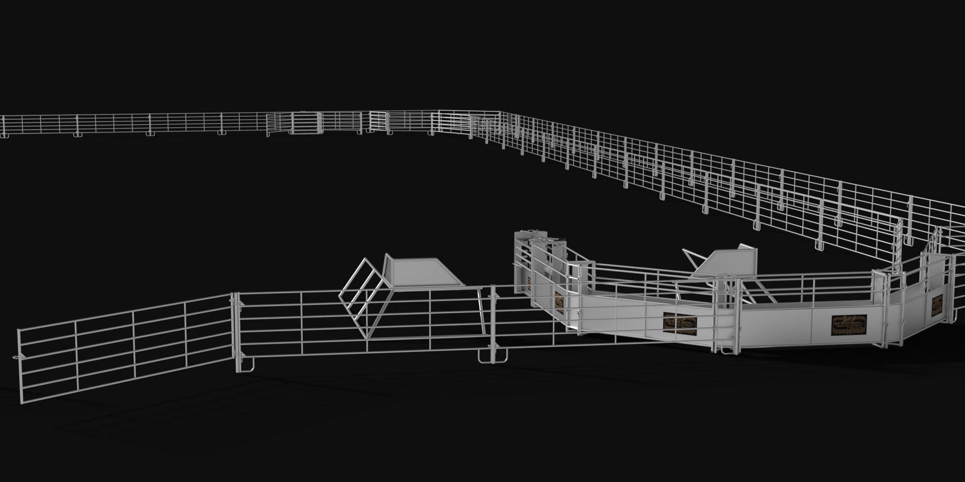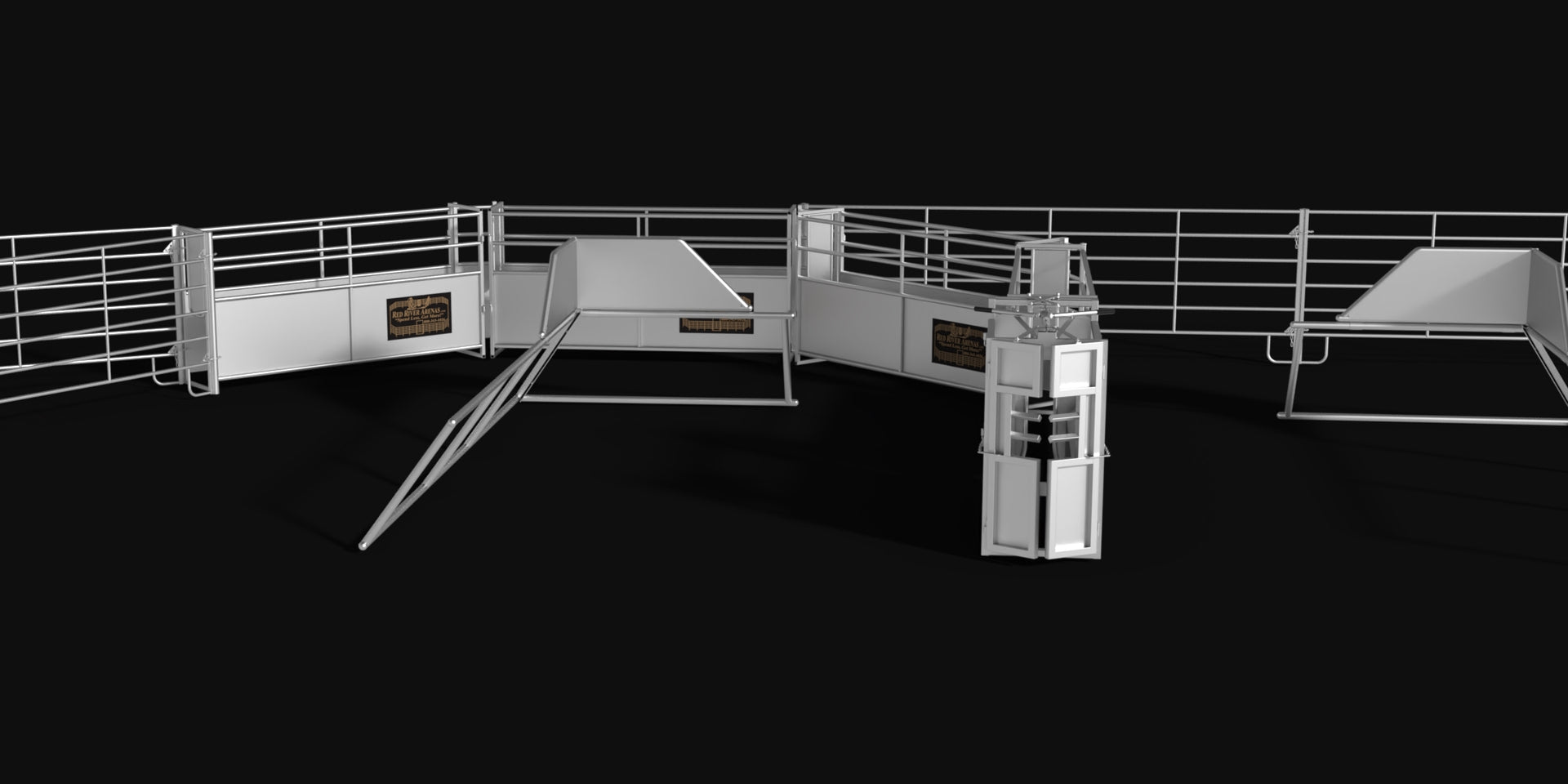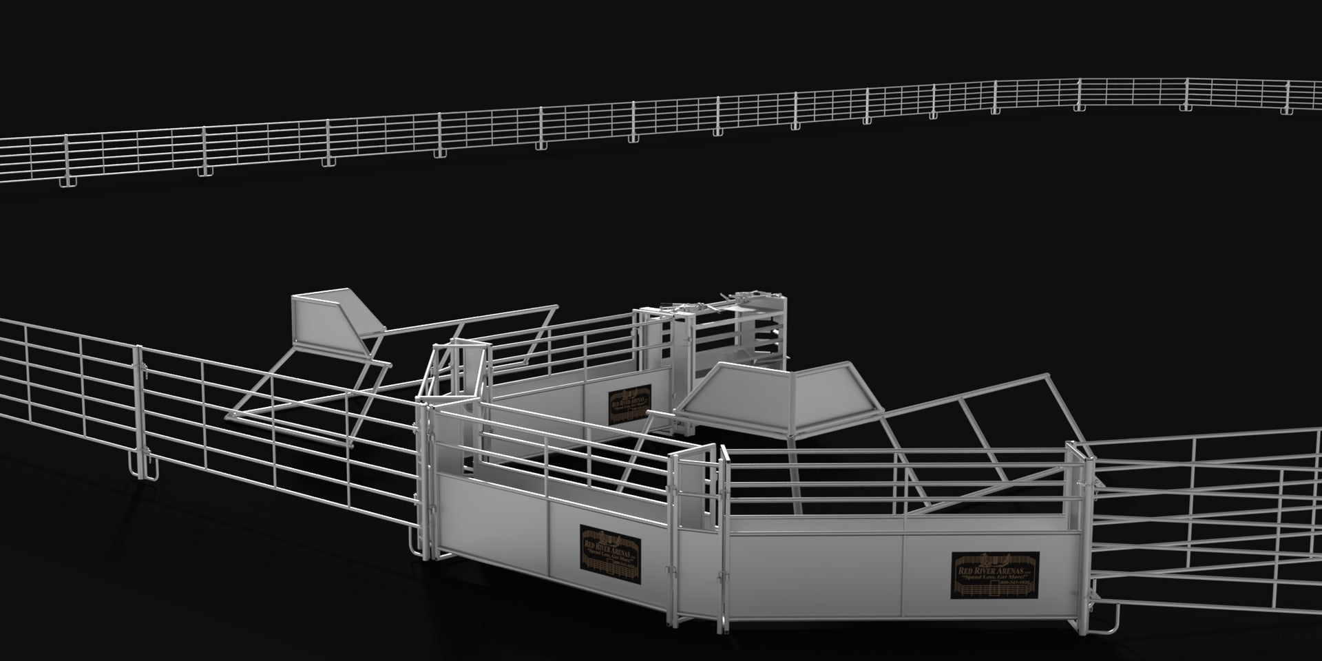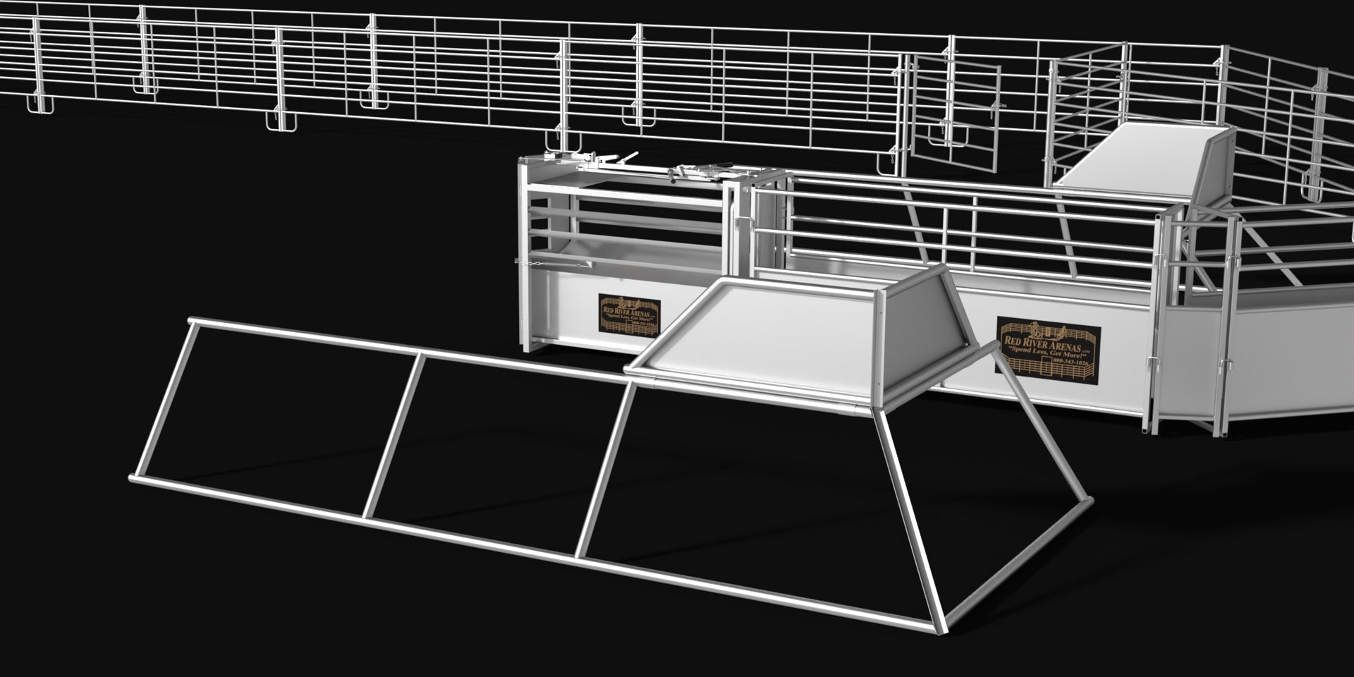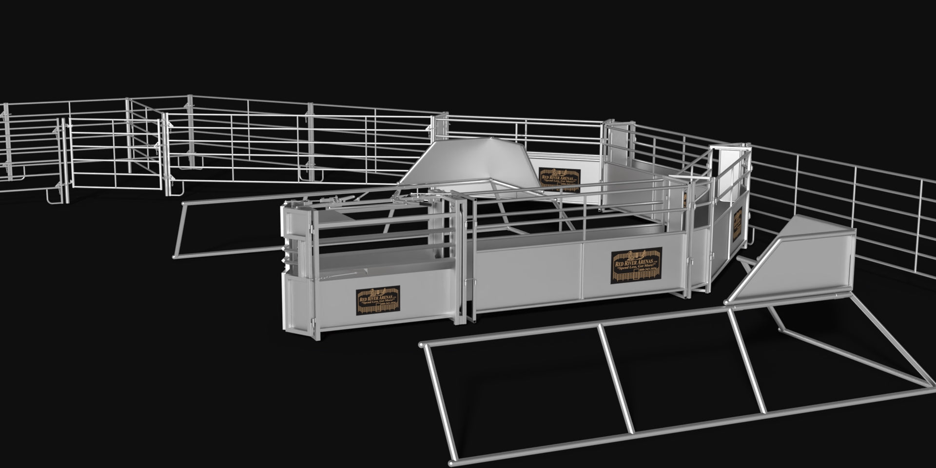 Red River Arena's roping chute is constructed from 14 gauge 2" galvanized round tubing and 14 gauge galvanized sheet metal. The combo steer and calf roping chute measures 6'4" long, 5' tall, and 32" wide OD and 28" wide ID and weighs approximately 545 pounds.
