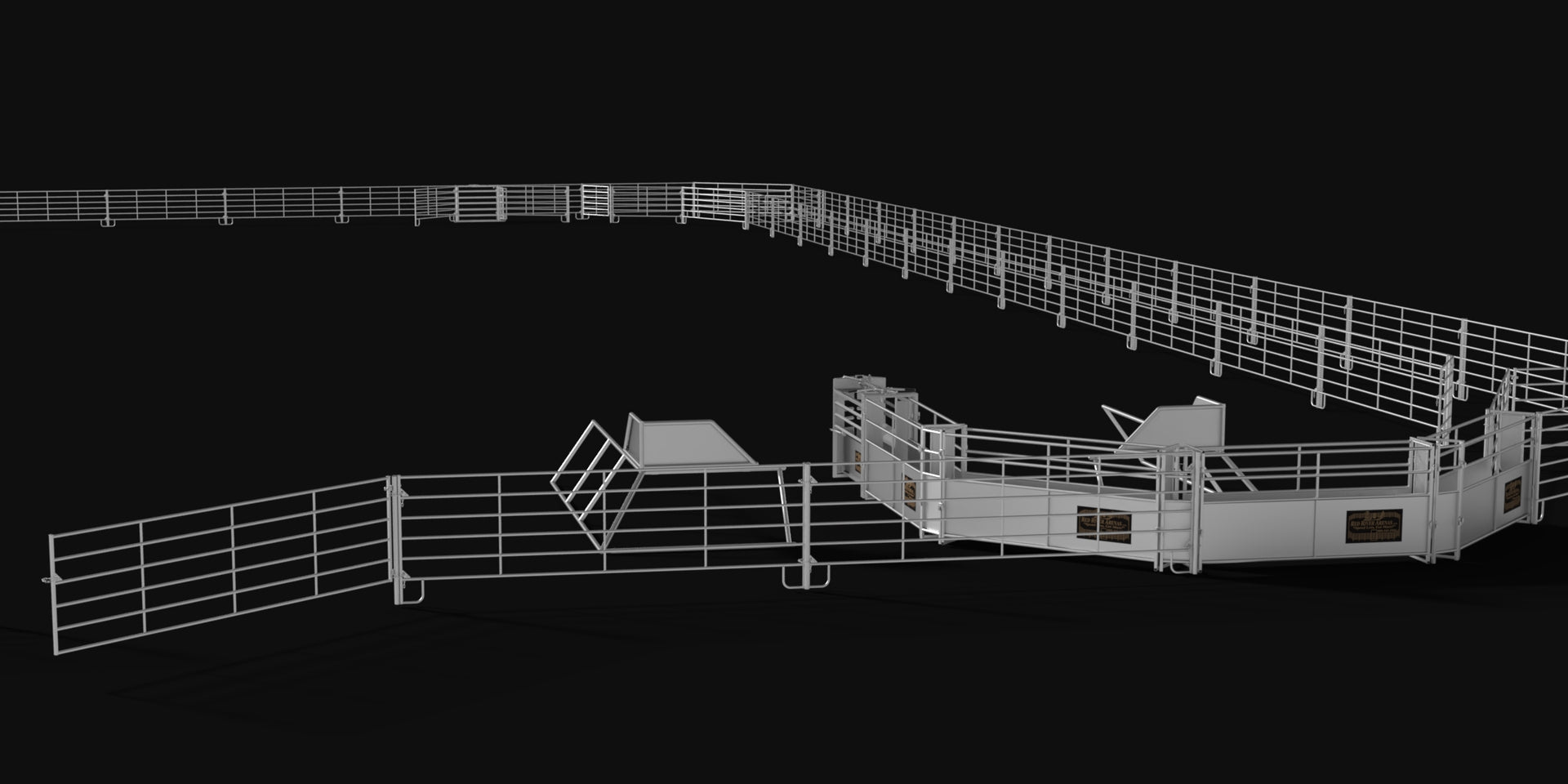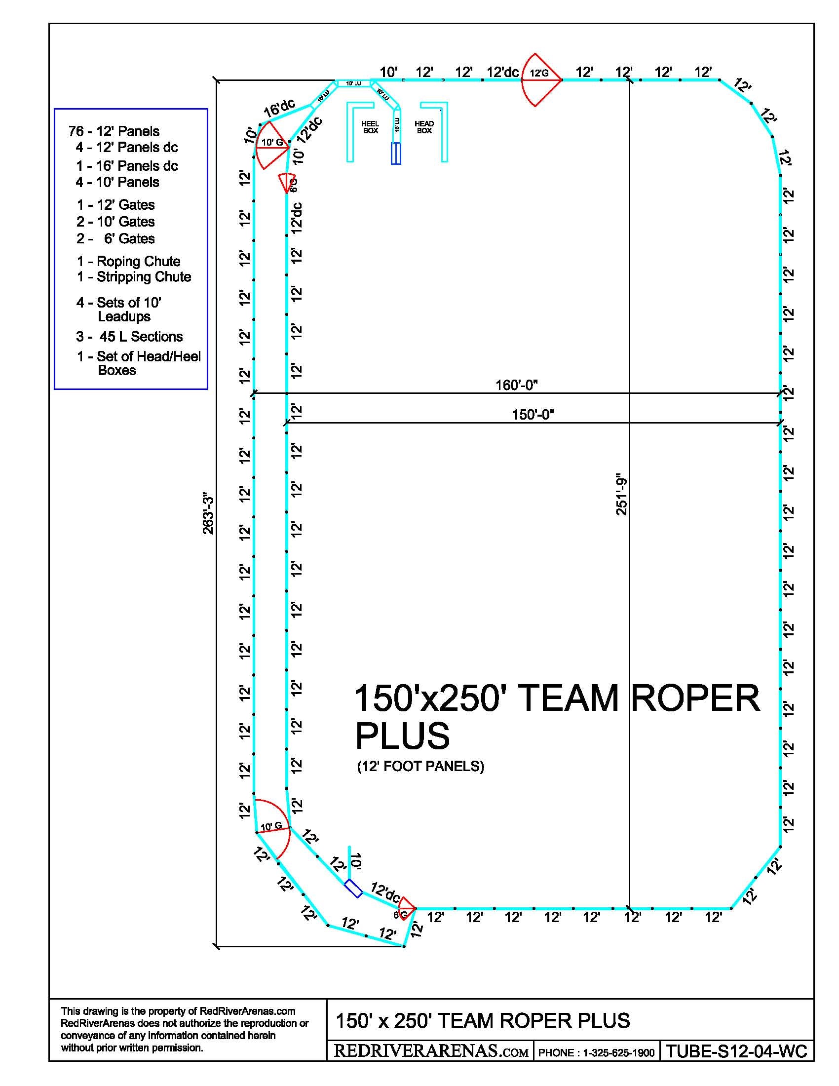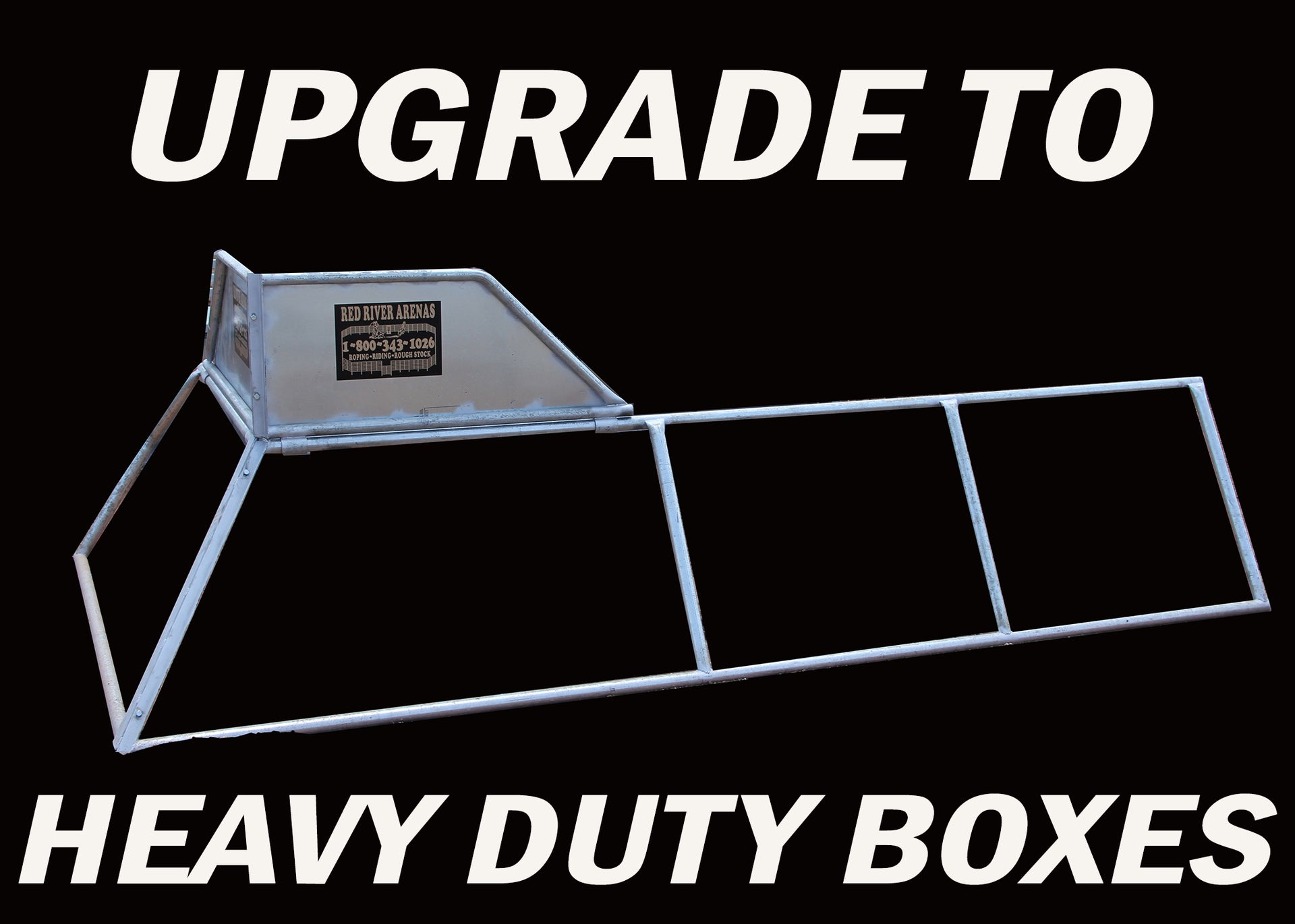 Red River Arena's roping chute is constructed from 14 gauge 2" galvanized round tubing and 14 gauge galvanized sheet metal. The combo steer and calf roping chute measures 6'4" long, 5' tall, and 32" wide OD and 28" wide ID and weighs approximately 545 pounds.