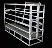 Red River Arena's roping chute is constructed from 14 gauge 2" galvanized round tubing and 14 gauge galvanized sheet metal. The combo steer and calf roping chute measures 6'4" long, 5' tall, and 32" wide OD and 28" wide ID and weighs approximately 545 pounds.