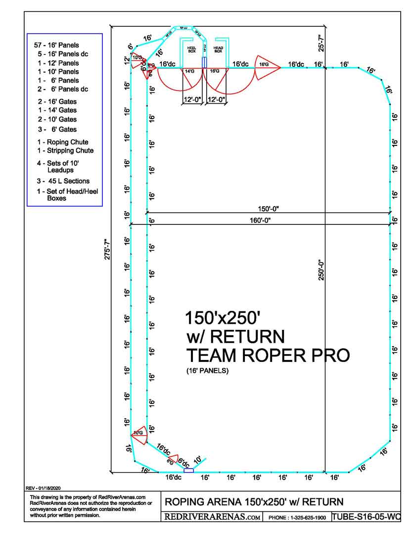 Red River Arena's roping chute is constructed from 14 gauge 2" galvanized round tubing and 14 gauge galvanized sheet metal. The combo steer and calf roping chute measures 6'4" long, 5' tall, and 32" wide OD and 28" wide ID and weighs approximately 545 pounds.
