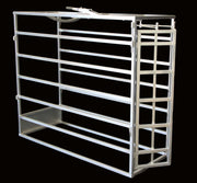 Red River Arena's roping chute is constructed from 14 gauge 2" galvanized round tubing and 14 gauge galvanized sheet metal. The combo steer and calf roping chute measures 6'4" long, 5' tall, and 32" wide OD and 28" wide ID and weighs approximately 545 pounds.