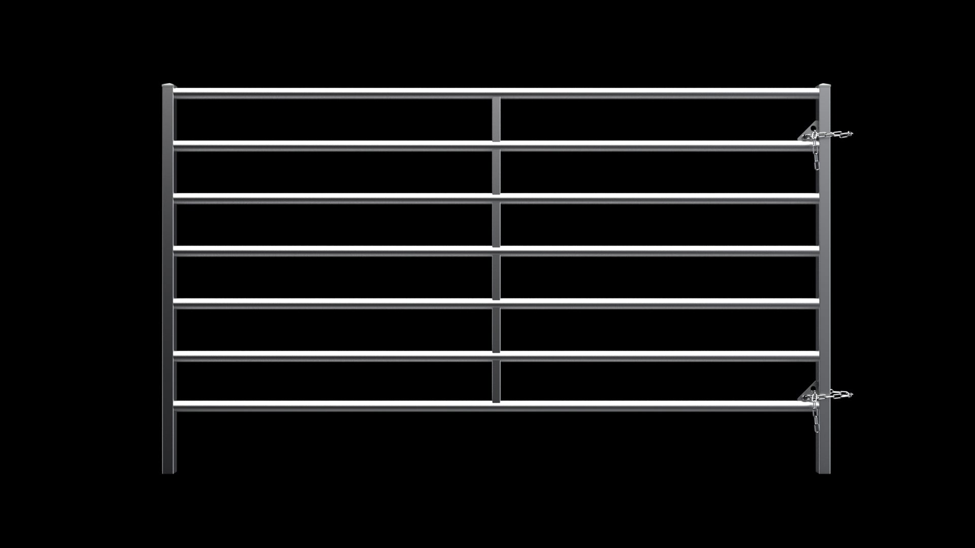 The Bronc Buster round pens are one of the toughest round pens on the market and the heaviest round pen for sale that Red River Arenas offers! Our all new PBT "Bull-Tough" panel can be summed up into one word- "indestructible". Weighing 200 pounds, its designed to hold anything you put in it. This panel is designed for the rankest of rough stock. The PBT panel is for permanent installation, and is not an easily portable panel. It is 6 feet tall, and 10-foot lengths. The legs are 2" square tubing, 13 gauge, with a steel cap welded on top. The PBT features 7, 2" round tubing, 13 gauge, saw-cut bars. It also has a 1-1/2" square tubing, 14-gauge braces to provide the panel with a bullet-proof build. The Bronc Buster round pen comes with a 6' walk thru. The gates are double framed, resulting in an extra strong gate that will last a lifetime. Our gates also feature a slam latch, providing easier opening and closing from horseback, or when working cattle. These panels have chain connections, allowing easier set up on uneven ground, and an even sturdier pen when used with posts for securement (recommended). The new PBT panel can handle all the grit you throw at it, leaving you satisfied with a life-long investment.