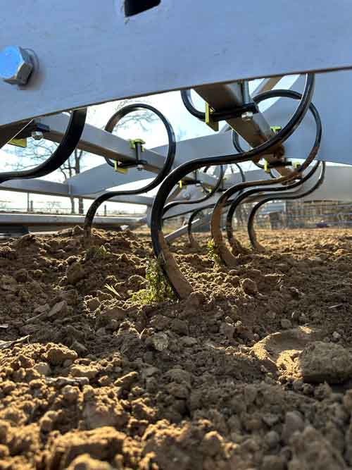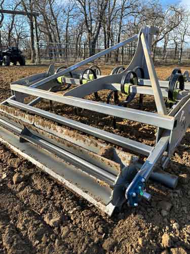 Red River's arena drag is different from the competition. We feature 5- 4-hole box blade shanks (rippers) on the front to break up tough ground and are angled for breaking up hard ground to your desired depth. You can set the rippers on the arena groomer in a low position for a deep plow, or the high position if you are not looking to groom your arena deep. We followed the rippers with two rows of heavy-duty S-Tines with reversable points. The S-Tines allows a higher volume of arena footing to be moved for maximum air and cushioning and a wider harrowing depth gives your groomer the ability to work your arena and not just float or scratch the surface. After the S-Tines, Red River's arena drag features a leveling bar (either height adjustable, or set to float position) for a smooth finish. Finishing up the arena drag is a paddle wheel crumbler bar to break up clods leaving your arena clean, smooth, safe, and professional!