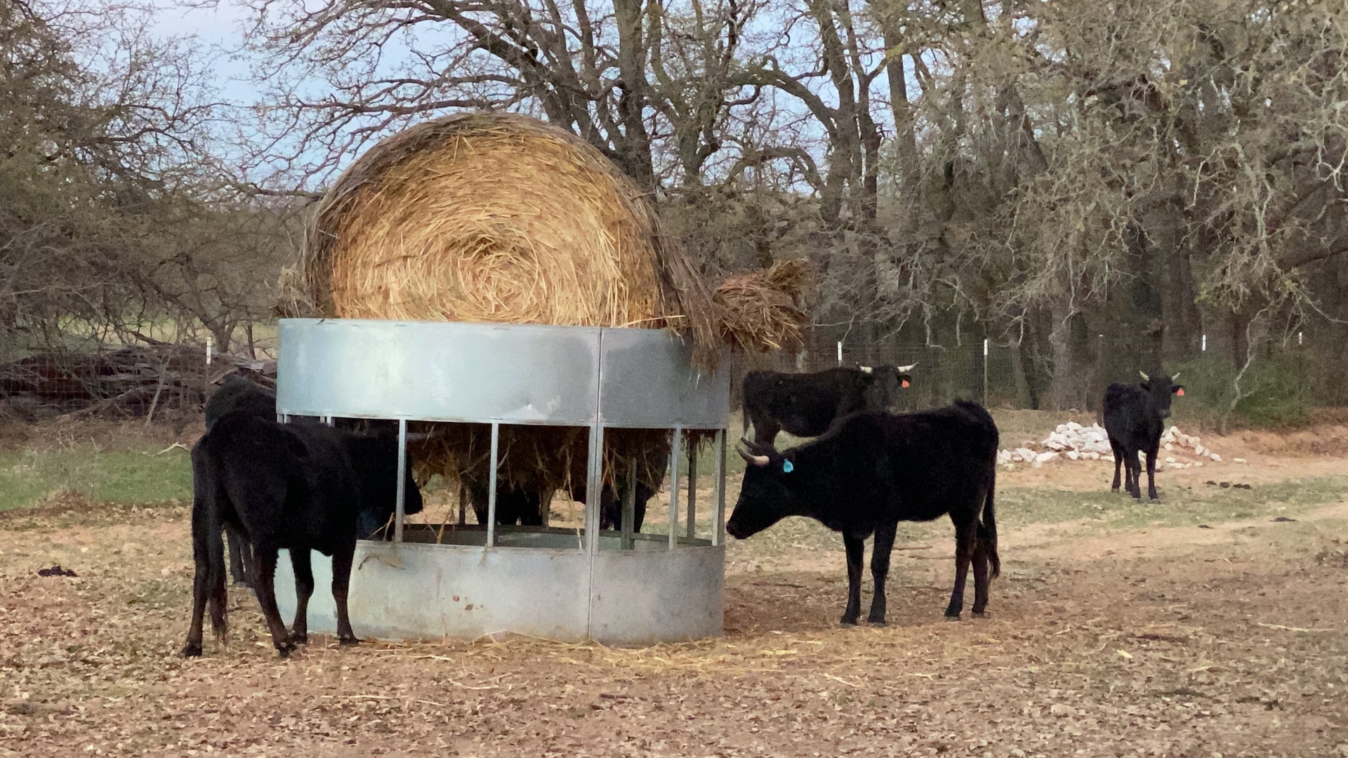 The pictures of these feeders were made in our owners feedlot. After the lease cattle are returned and are retired to become "cows", there would be approximately 50 head in a pasture on 3 of these feeders. He would feed a round bale every other day in these feeders and you can tell from the ground around the feeders, there wasn't any waste.
