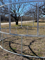 Red River Arena's galvanized economy round bale feeder will hold round bales up to a 5'x6' round. It is and economical round bale feeder that doesn't have a skirt. This feeder is good for holding a round bale of hay together and letting all livestock eat without having to eat over a skirt.