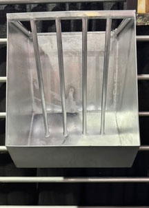 Red River Arena's galvanized hanging metal horse feeder is constructed from 16 gauge sheet metal and 16-18 gauge bars with smooth corners to keep your animal safe from injuries. The hanging horse stall feeder doesn't have to be used for just horses, it is designed to feed any of your livestock! This hanging horse feeder doesn't just have to be used in a horse stall environment, it can also be used as a stable fence feeding solution, a fence mounted horse feeder, a outdoor horse feeder, or a wall mounted horse feeder. Red River Arenas has also added a "hook" to the back to help keep horses that like to "play" with their feeders from pulling the hanging fence feeder off of its mounted position. It's versatility leaves no limitations to the size or breed of your animal!