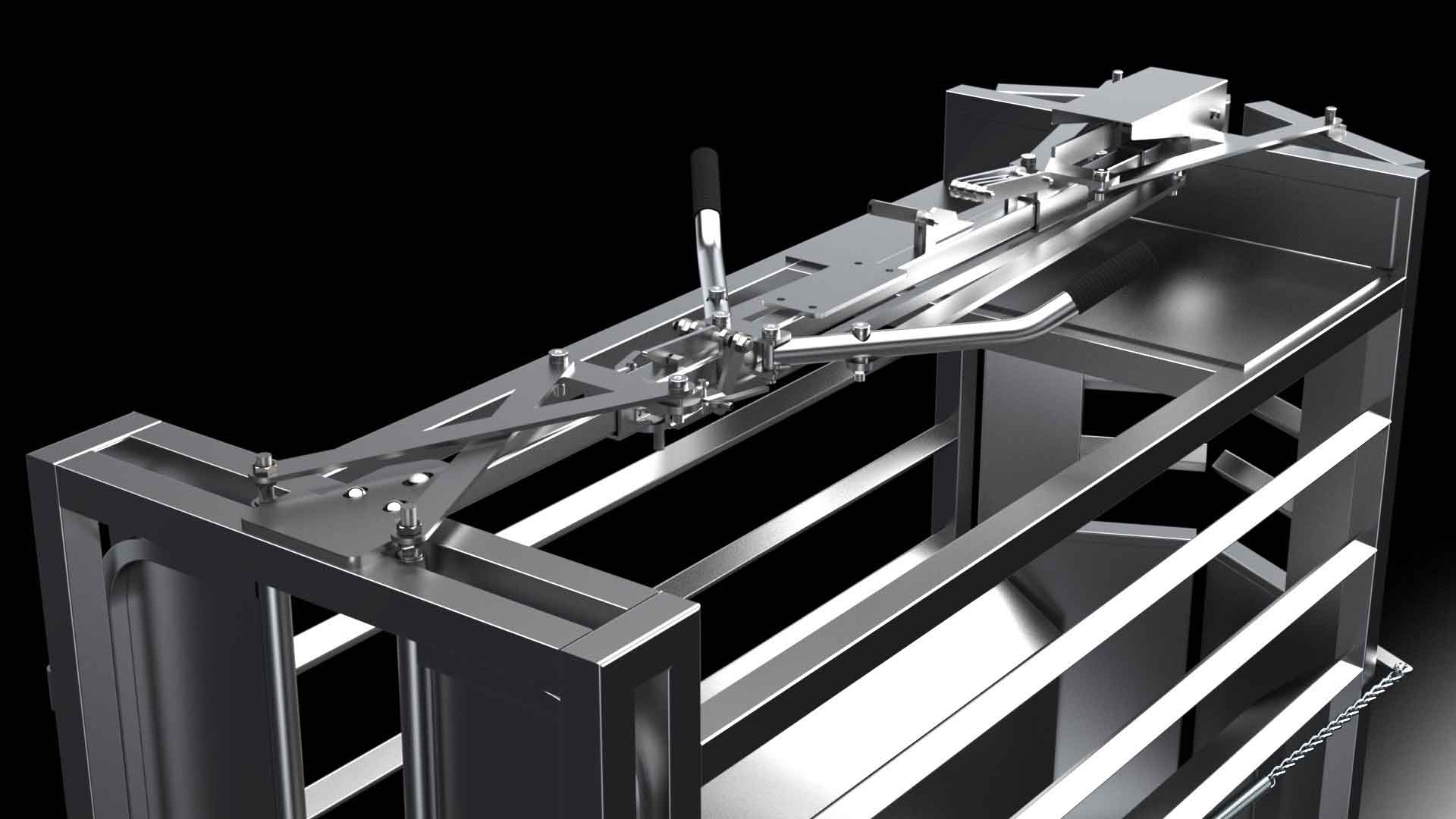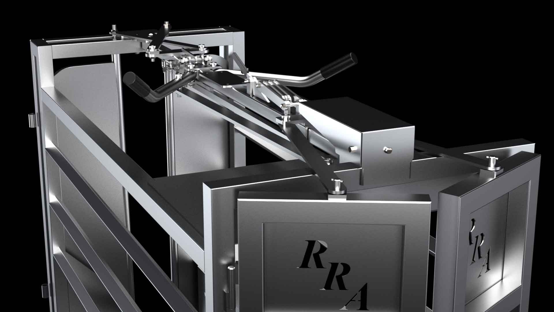 The RC200 is a revolutionary all new chute featuring a single handle action that opens and closes the front and back door simultaneously- no other chute on the market can perform this state-of-the-art operation. Easy open fingertip touch release and spring assisted opening gives every roper the same start out of the chute every time. This chute is easy to operate from the ground or horseback and can be operated from either the head or heel box. Scoring horses or teaching horses to leave off of your hand is easier than with our older model chutes with the quiet opening of the head gates. Back gates glide and open or close without hang-ups, the handle doesn't intrude into the box, and there are no dangling ropes. Still constructed from the same great quality that Red River Arenas is known for, each chute is all galvanized, constructed from 14 gauge 2" square and 14 gauge sheet metal, and feature greaseable hinges. This chute is operated manually, but the automatic option is available. This chute was designed for the safety of the roper and stock, as well as, ease of operation.
