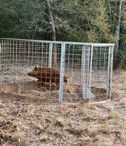 Ease of Transport and Usage: Our feral hog and wild pig traps are designed to be quickly and easily transported and set-up by a single person. After assembly, (only 8 bolts needed) the entire portable hog trap can be easily turned on its side and rolled into and out of any average pick-up or trailer. More importantly, the entire trap can be readily rolled any distance directly on the ground to the desired catch location! Relocating the hog snare trap to a new location is equally as simple and fast. This key pig trap design innovation renders all other competitor pig corral plans virtually obsolete. Less expended time and less labor translates to money saved!