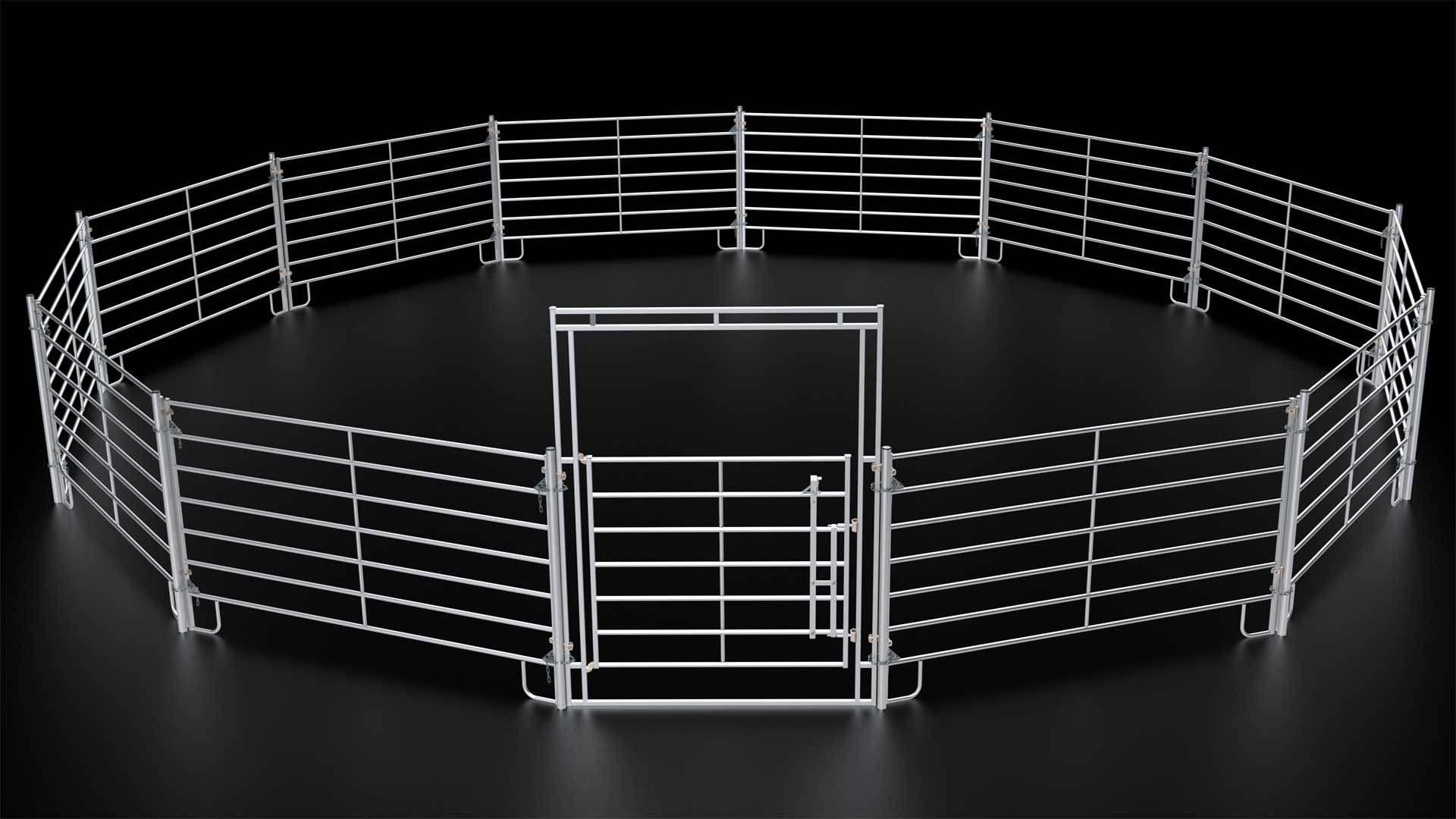 The "Level Up" round pen is designed to offer horseman an economical 6' tall round pen for sale. The "Level Up's" panels are from our PMT panel. This panel is our medium-weight panel, and entry level heavy panel. It is designed for roping arenas, round pens, or temporary pens. The PMT Panel is 6' tall, 10' long, and weighs 66 pounds. It features chain connectors which make setting up your pens on uneven ground easier, and also stronger with the use of posts for securement (recommended). The bars on the PMT are fabricated out of 1-1/4" round tubing, are 16 gauge. The legs on the PMT panel are 1-1/4" 16 gauge as well and feature a steel dome welded cap. Even though this panel is 6' tall, we do not recommend it for draft horses, it will be to light for them. The round pen comes with a matching 6' walk thru gate. The gates are double-framed and feature a cowboy latch, providing a more efficient way to open and close gates via horseback.