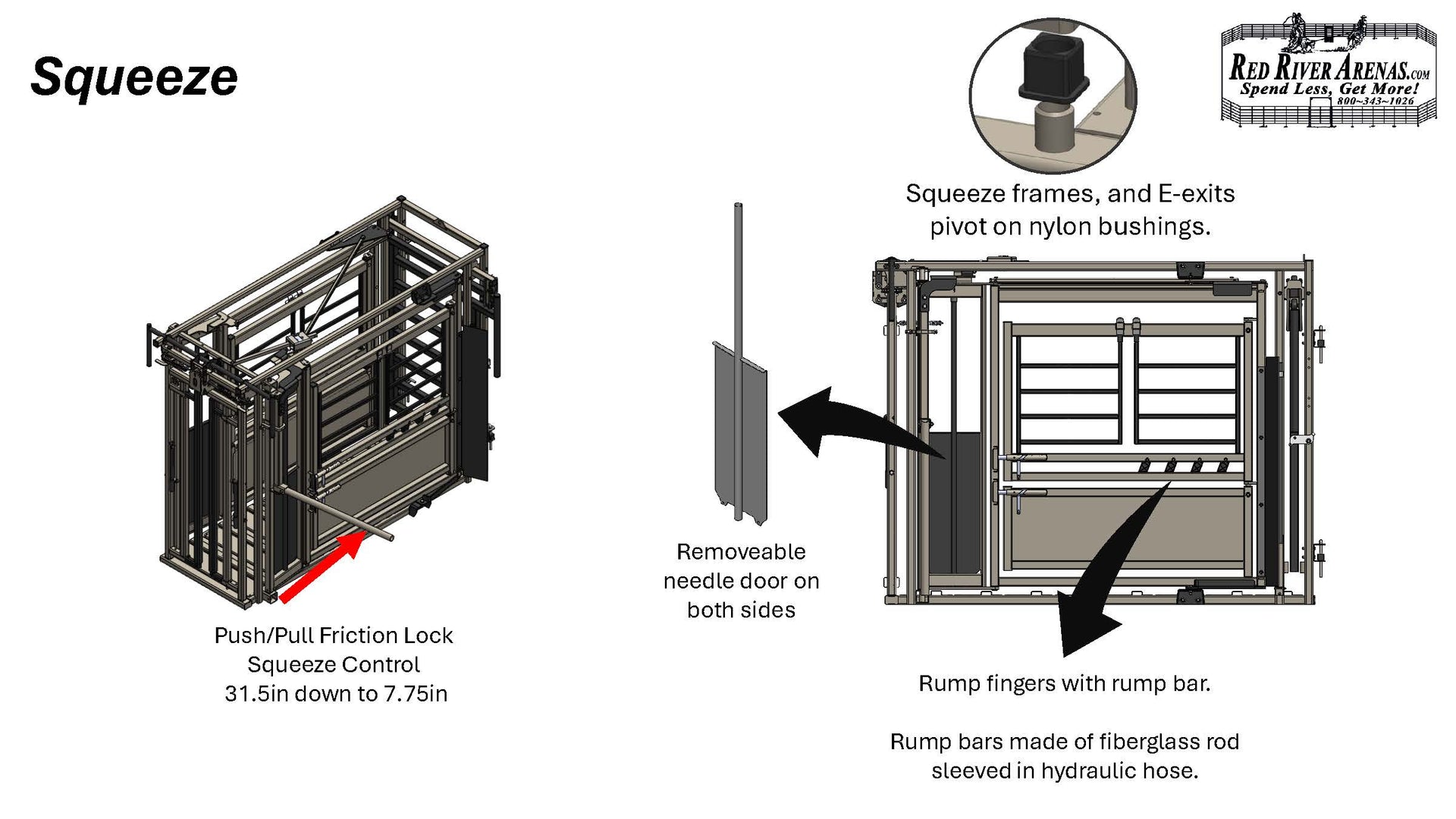 Meet the new Red River Arenas Self-Catch Top Hand Squeeze Chute — built by cattlemen, for cattlemen.