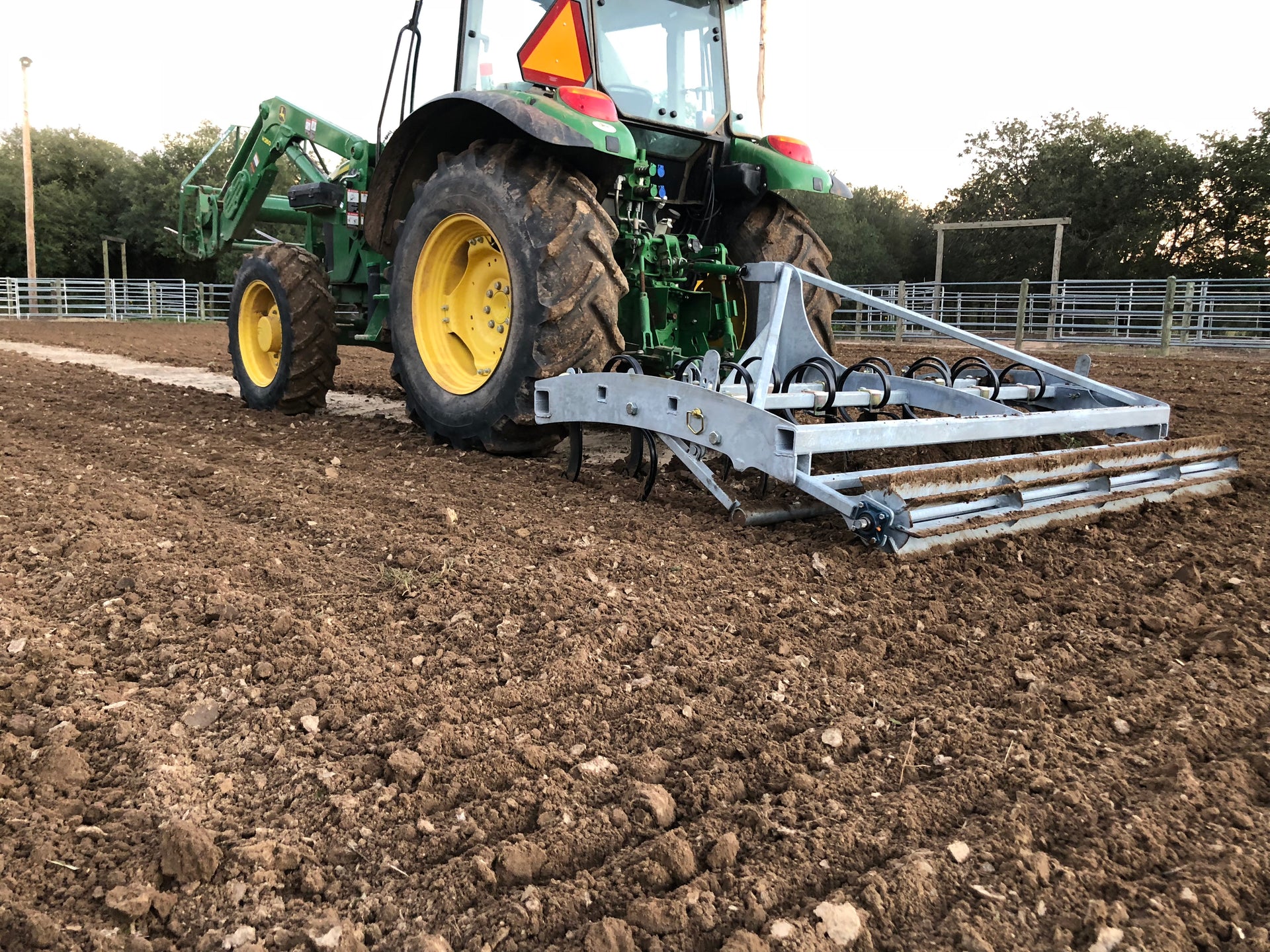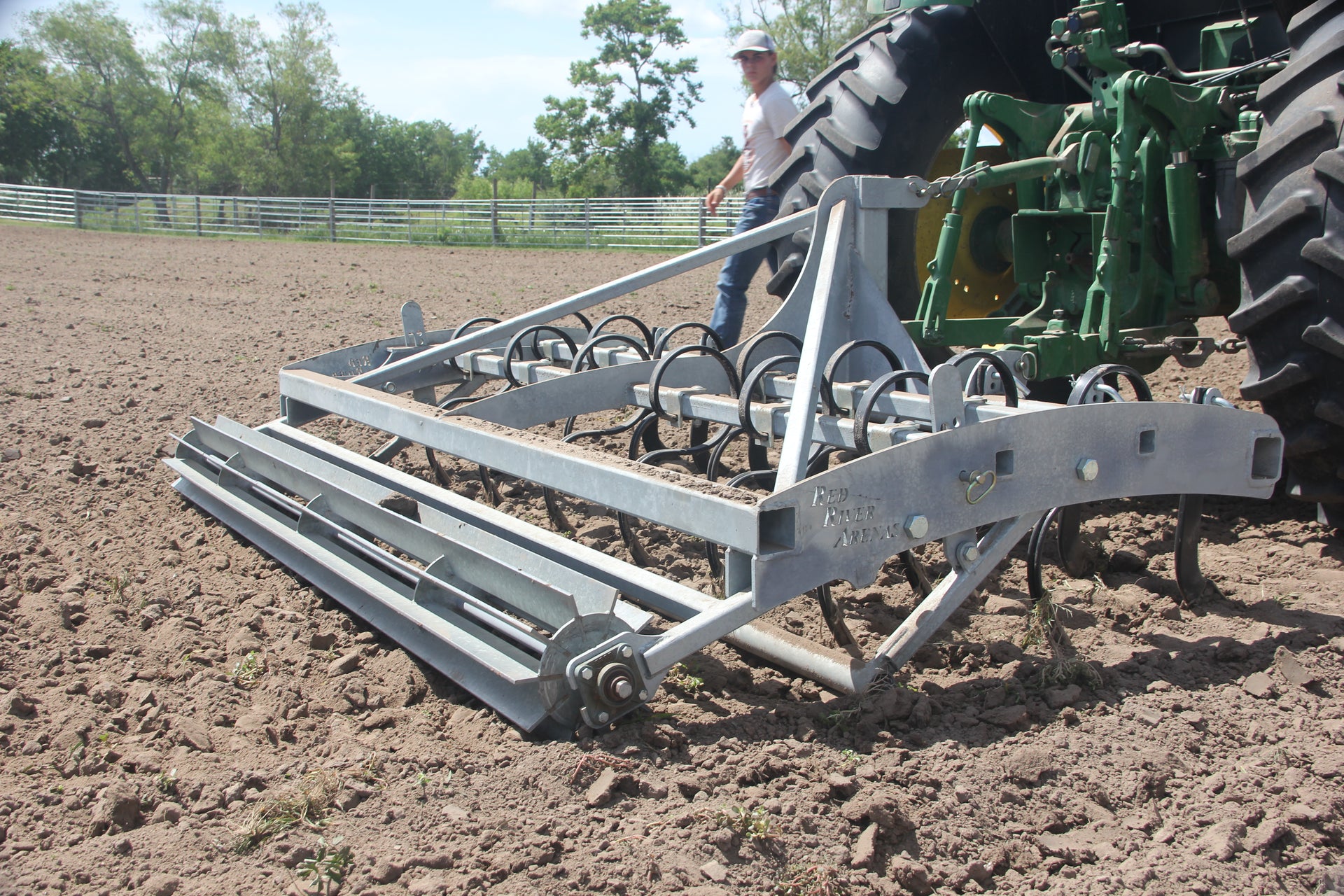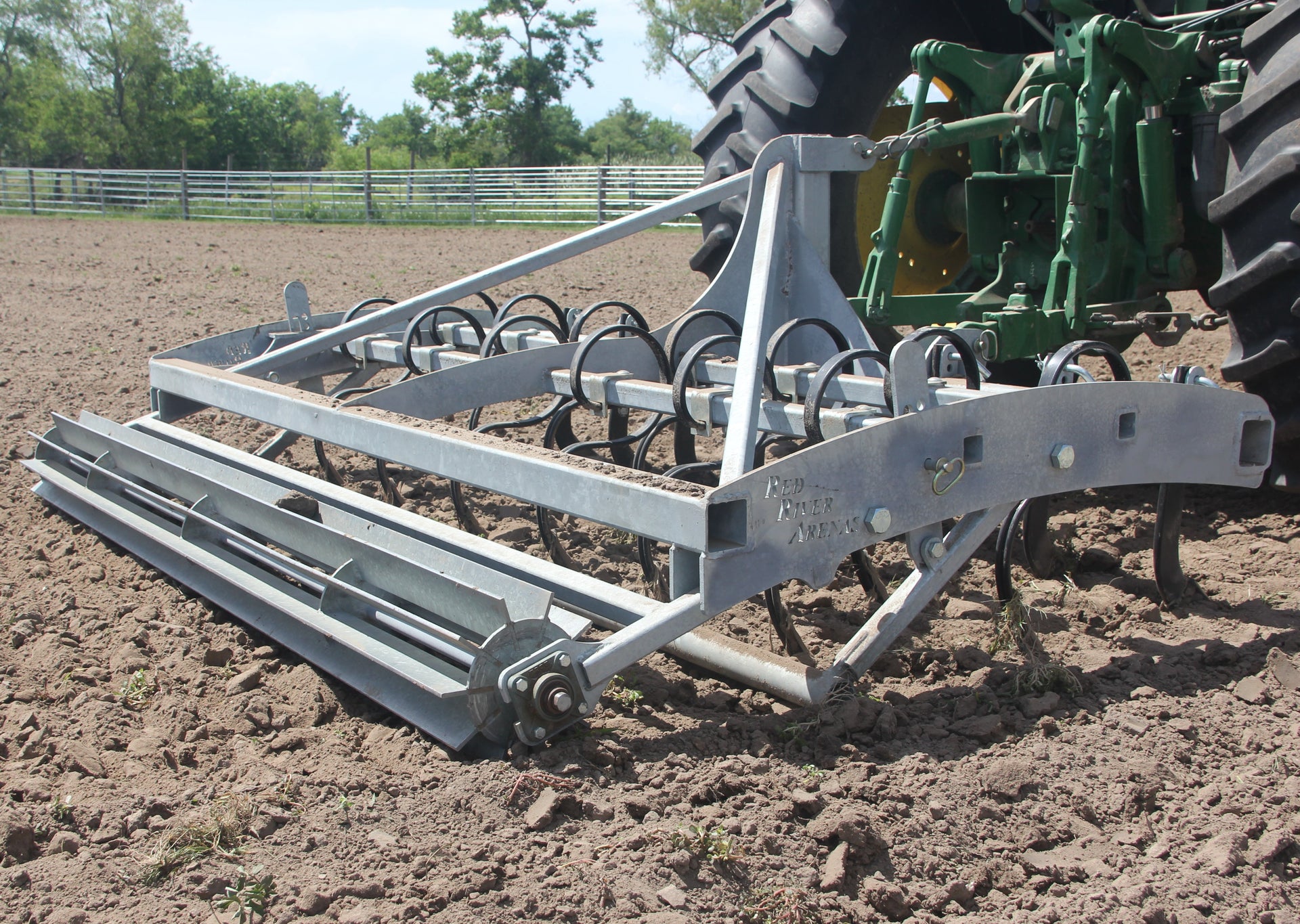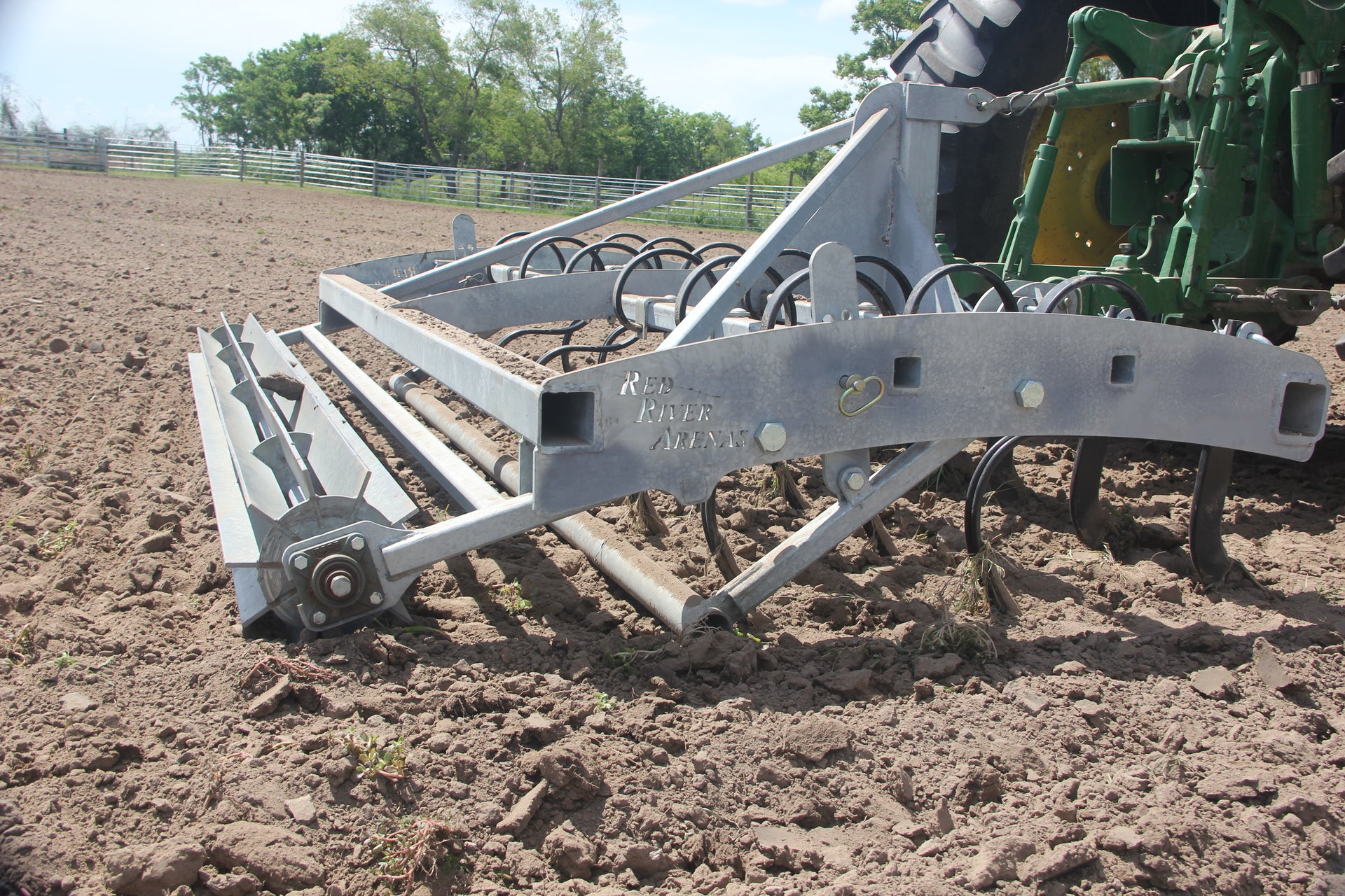 Red River's arena drag is different from the competition. We feature 8- 4-hole box blade shanks (rippers) on the front to break up tough ground and are angled for breaking up hard ground to your desired depth. You can set the rippers on the arena groomer in a low position for a deep plow, or the high position if you are not looking to groom your arena deep. We followed the rippers with two rows of heavy-duty S-Tines with reversable points. The S-Tines allows a higher volume of arena footing to be moved for maximum air and cushioning and a wider harrowing depth gives your groomer the ability to work your arena and not just float or scratch the surface. After the S-Tines, Red River's arena drag features a leveling bar (either height adjustable, or set to float position) for a smooth finish. Finishing up the arena drag is a paddle wheel crumbler bar to break up clods leaving your arena clean, smooth, safe, and professional!